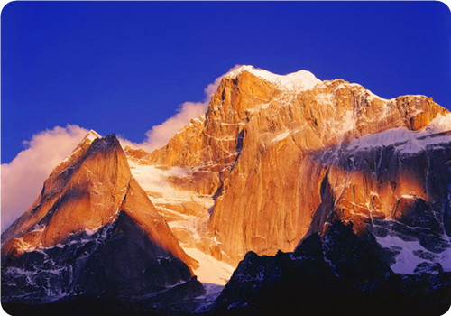 第三天:清晨打開窗戶雪山已經(jīng)在你面前,收拾好個人裝備馬幫已經(jīng)在等咱們了,今天我們正式進入四姑娘山長坪溝,長坪溝有五分之一的路是有棧道的,咱們先在棧道上適應一下高度慢慢走走,走完棧道后與馬幫匯合(馬是不讓上棧道的,呵呵)這時如果你有些累了你可以騎在馬上欣賞四周的風景,如果你適應的不錯,那你可以繼續(xù)享受徒步山間的樂趣,今天的路上風景會美不勝收,但我們的營地更美,木騾子營地的位置是這樣的,營地的右邊緊挨著幺妹峰,正前邊是駱駝峰,左邊是一條安靜的小河,而營地本身是一片美麗的高山草甸,晚上我們就要睡帳篷了,如果愿意你可以在入睡先拉開帳門,躺在帳篷里仰望美麗的銀河。