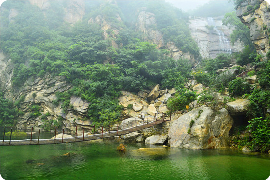 云蒙峽風景區位于密云縣石城鄉水堡子村西,在密云水庫西側,云蒙山東南坡。距密云縣城約22公里,距北京東直門90公里。云蒙峽風景區以雄險而曲折的西北-----東南向峽谷為主軸,上下串聯著數十個不同特色的風景小區。而且越深入云蒙峽腹地,那些奇峰、怪石、清潭、飛瀑、野花、密林等勝景也越來越多和越優美。這里山巒巍峨聳拔,溝壑切割幽深,峰石造型似人似獸,潭瀑交輝若鏡若練。云霧朦朧,變化莫測;花木芬芳,香溢百里。游者處之,無不令人一飽眼福。春季入峽,山花爛漫,桃杏爭艷;仲夏入峽,清泉甘冽,消夏宜人;金秋入峽,紅葉滿山,碩果累累;隆冬入峽,雪嶺晶瑩,冰瀑奪目。